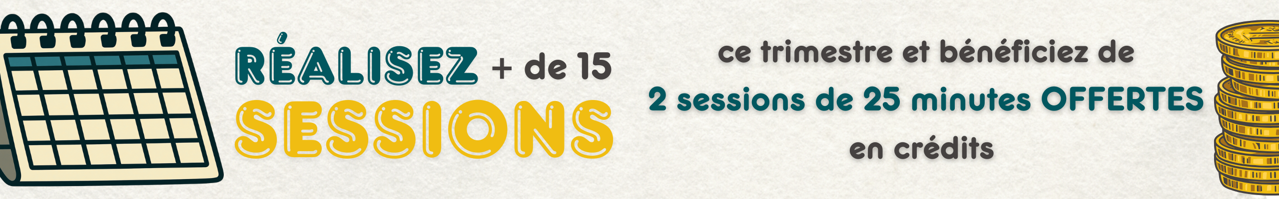 - Sessions de 15 - 25 - 40 ou 55 minutes à l'heure qui vous convient !